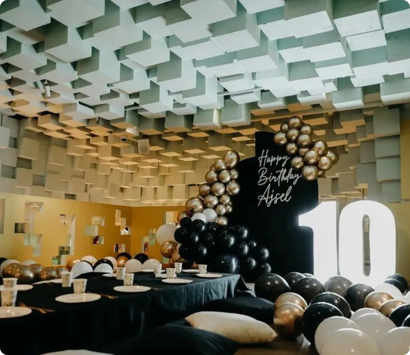 Një festë për fëmijë duhet të jetë një përvojë e paharrueshme për fëmijët që kanë ditëlindjen dhe të ftuarit e tyre. Ne e dimë që si prind ose kujdestar ju preferoni të lehtësoheni sa më shumë që të jetë e mundur në mënyrë që të mund të shijoni këtë ditë të veçantë së bashku me fëmijët tuaj. Dhe të gjitha këto në një mjedis të pastër, të sigurt ku nuk jeni të varur nga kushtet e motit.